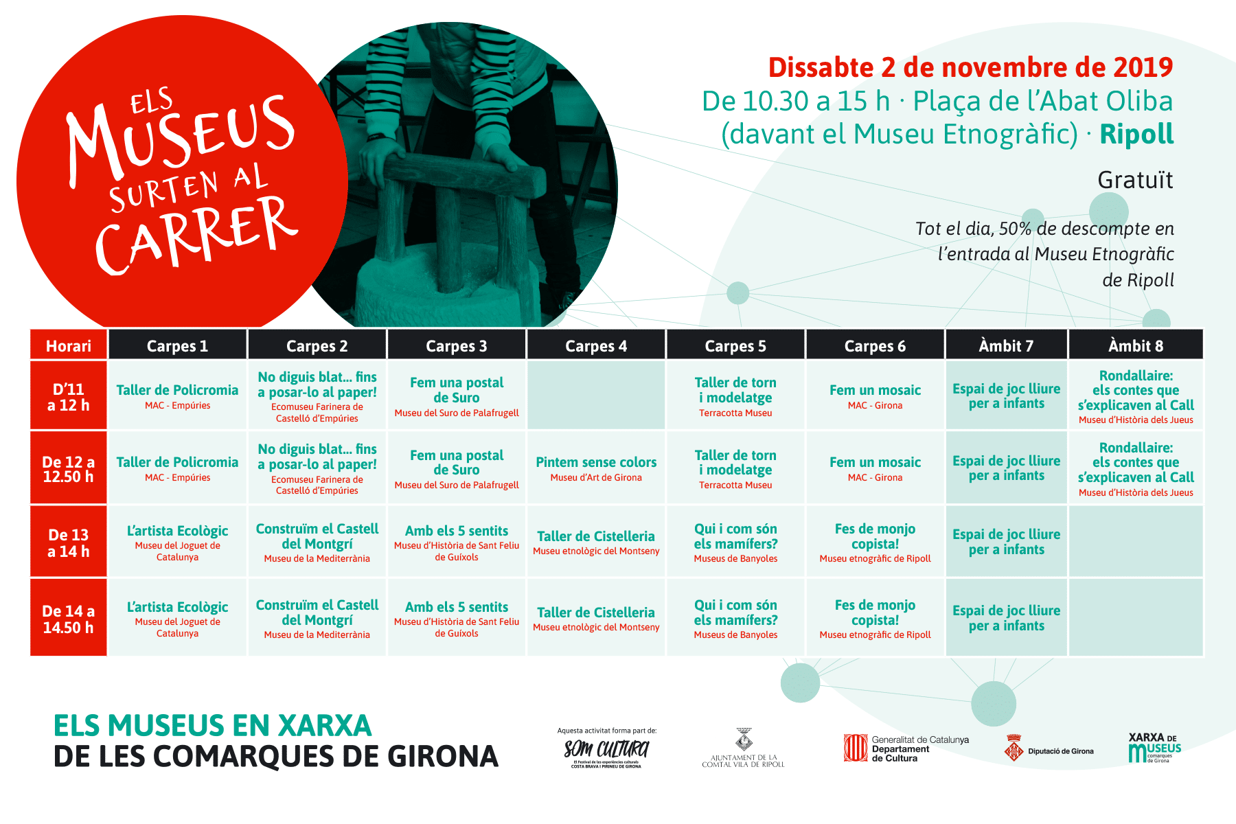 Aquest mes de novembre arriba una nova edició del festival Som Cultura, en el marc del qual els museus en xarxa de les comarques de Girona organitzen una matinal de tallers per als més petits de la casa. En aquesta ocasió la matinal tindrà lloc dissabte 2 de novembre a la Plaça de l’Abat Oliba (davant del Museu Etnogràfic de Ripoll. Una proposta singular en què trobareu diferents tastos de temàtiques i formats de tallers per apropar-vos als nostres museus. El Museu d’Art de Girona ofereix el taller “Pintem sense colors“, ens trobareu a la carpa 4, de 12 a 12.50 h, us hi esperem!