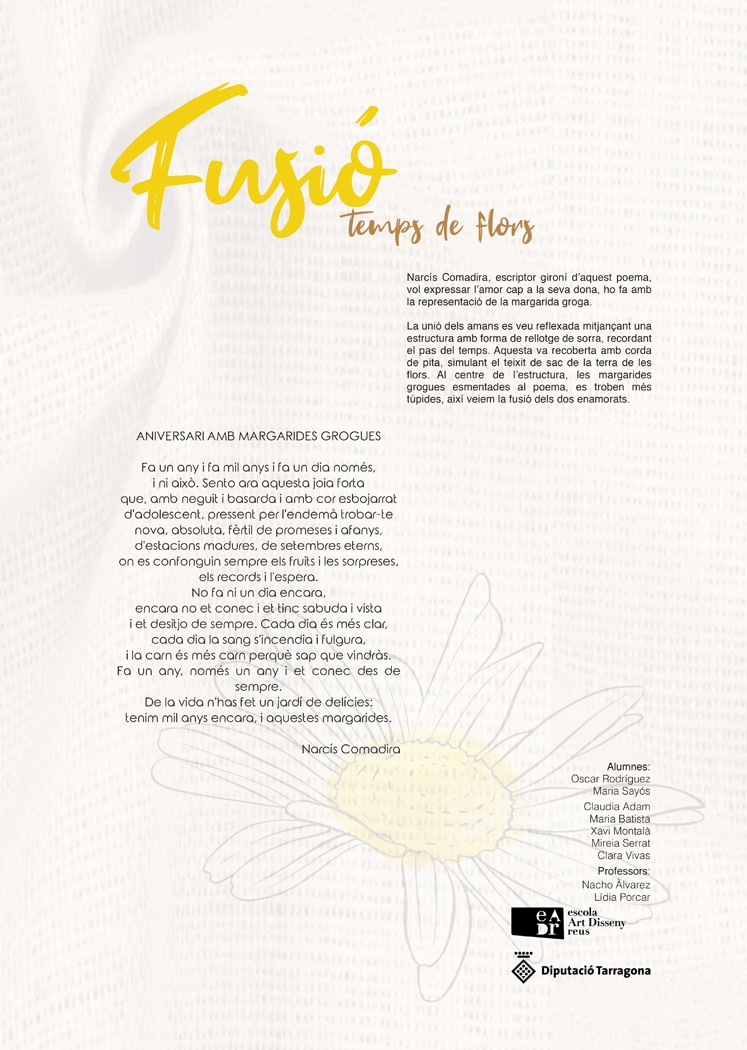 Autoria: Maria Sayós, Oscar Rodríguez, Mireia Serrat, Clara Vivas, Xavi Montalà, Clàudia Adam, Maria Batista de l’Escola d‘art i Disseny de Reus