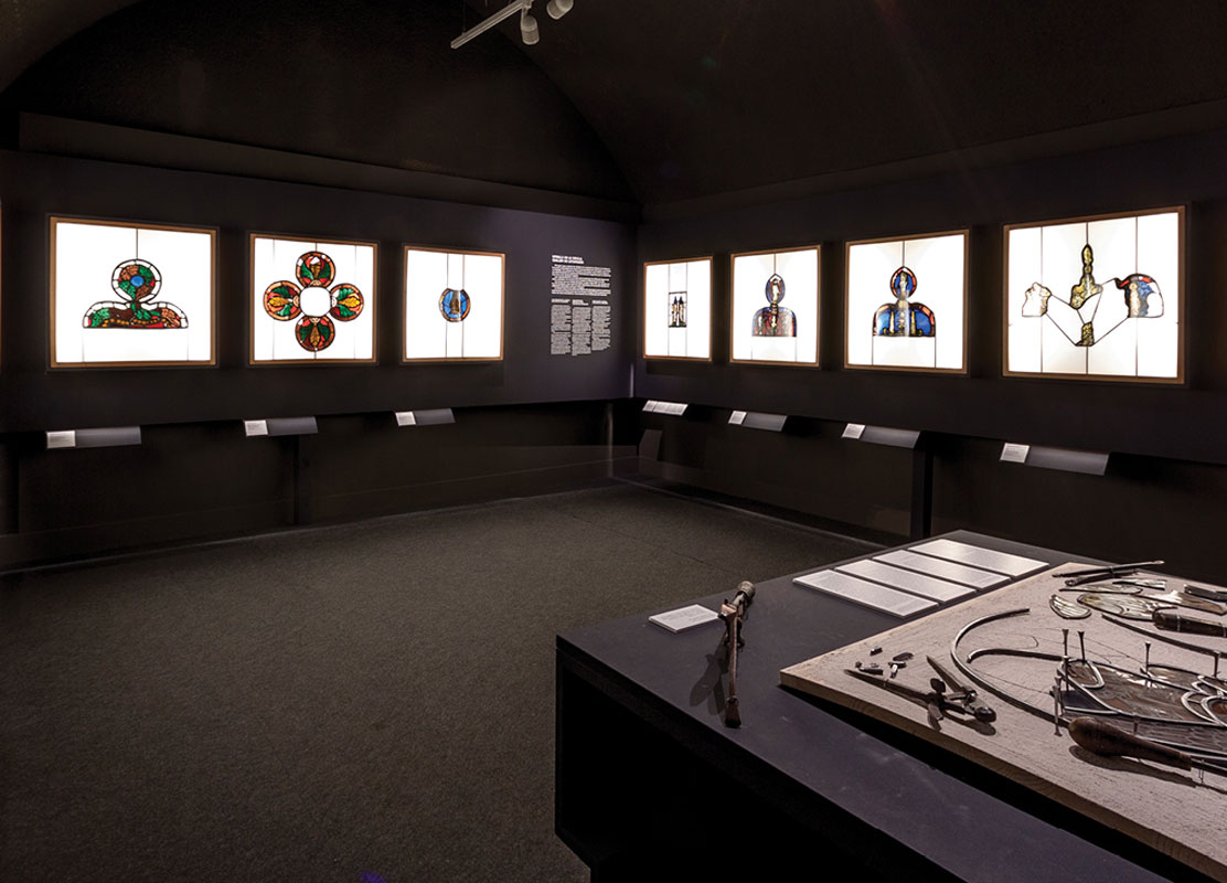 En aquesta ocasió el Museu d’Art mostra per primer cop una selecció de fragments dels vitralls del segle XIV de la Catedral de Girona, actualment conservats en magatzems. Es tracta d’autèntiques joies de la vidrieria medieval que van omplir de llum polícroma la Catedral al llarg dels segles. Per primer cop en una exposició i complementats amb les taules de vitraller del fons del md’A, úniques al món, els fragments conservats permeten conèixer de prop la tècnica d’elaboració i la iconografia de l’època, així com una primera aproximació al món dels vitrallers, molt actius durant l’edat mitjana a Girona, ciutat que fou un autèntic catalitzador de les innovacions aportades per artistes i artesans del nord d’Europa.