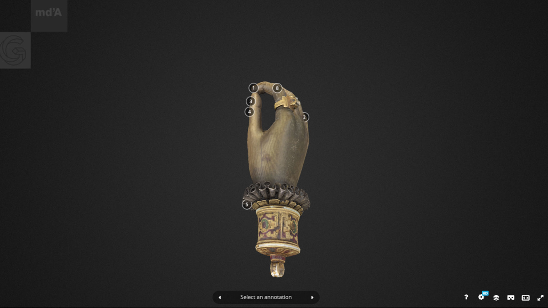 Tots els models disposen d’una acurada explicació en tres idiomes, a manera de notes desplegables. Seguint aquestes notes, es pot fer un autèntic recorregut tridimensional al voltant de la peça en què anem descobrint la seva història i significat des de punts de vista impossibles en la contemplació de l’objecte real.