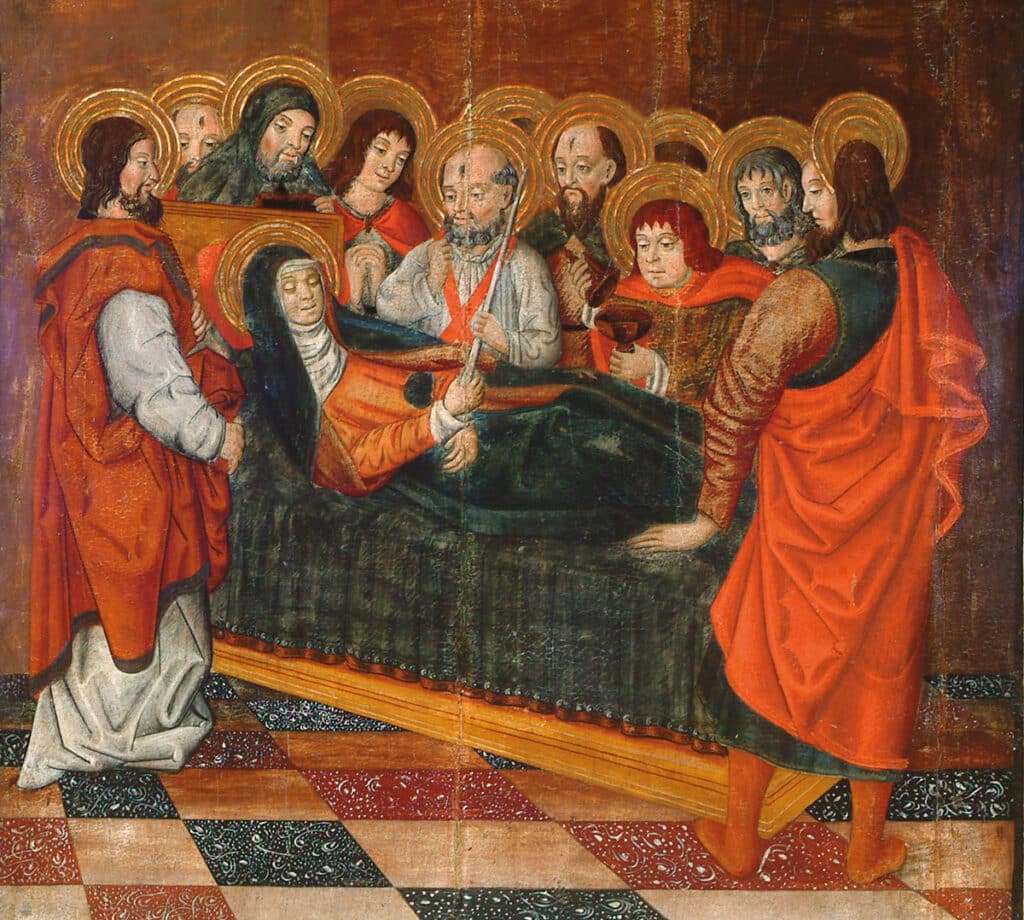 El pintor Pere Mates (c. 1490-1558) va desenvolupar la seva obra – força nombrosa si bé majoritàriament atribuïda – entre Girona, Besalú i la Garrotxa, en un moment de transició artística, entre el Gòtic i el Renaixement. Es va formar amb pintors estrangers arribats a Girona, especialment Pere de Fontaines i Joan de Burgunya, amb qui va treballar de jove i dels quals va rebre influència.