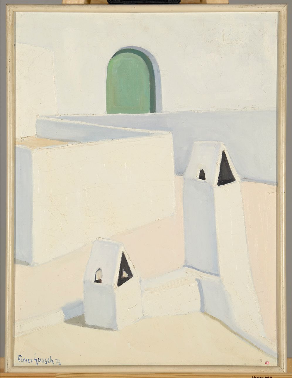 Vicent Ferrer Guasch (Sant Antoni de Portmany 1917 - Eivissa, 2018), conegut com a Ferrer Guasch, va ser un pintor dedicat a representar el paisatge i l'arquitectura tradicional de la seva illa natal, com es veu en aquesta obra. Sovint s'ha parlat d’ell, com “el pintor dels blancs d'Eivissa”. Després de la Guerra Civil, a Barcelona, va obtenir la titulació de mestre i els estudis a l'Escola Superior de Belles Arts Sant Jordi. Va exposar regularment a Barcelona, Ciutat de Mallorca i Eivissa. L'any 1962 es va traslladar a Eivissa per prendre possessió de la plaça de catedràtic de dibuix de l'Institut Santa Maria d'Eivissa, que ocupa fins a la seva jubilació, l'any 1982. Va crear el Grup Puget per fomentar l'obra dels pintors eivissencs i en honor de Narcís Puget, considerat pare de la pintura eivissenca contemporània. Al llarg de la seva vida va compaginar sempre la docència amb la seva dedicació a la pintura i va participar a nombroses exposicions aquí i a països com Suïssa, Alemanya i els Estats Units.