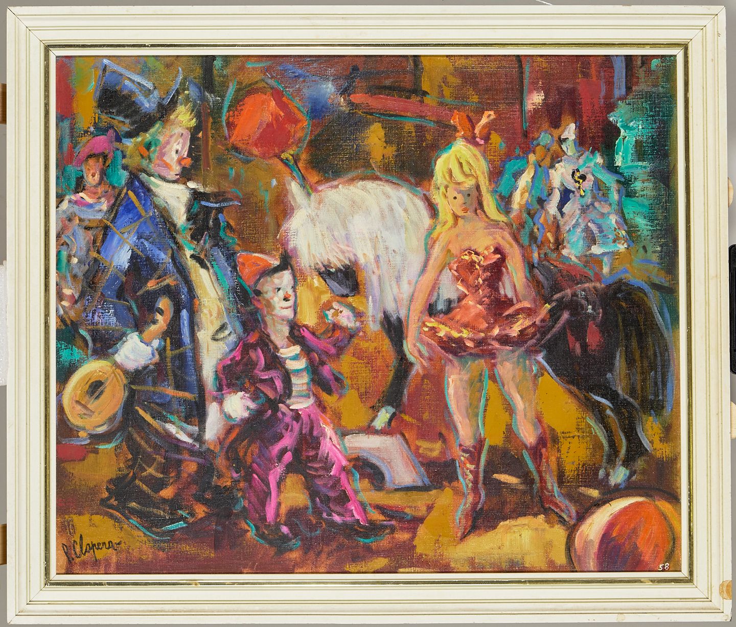 Pere Clapera (Sant Fruitós del Bages, 1906 - Barcelona, 1984), pintor, dibuixant i il·lustrador. A partir de la dècada de 1920, va començar a dibuixar en diaris humorístics com Pierrot i com a il·lustrador de novel·les, i més tard va participar en exposicions individuals amb temàtiques d'aspectes cinematogràfics, paisatges de la Costa Brava, escenes de revistes teatrals, ballet i flamenc, i, sobretot, escenes del circ, com aquesta obra. Va exposar regularment a la sala Rovira des del 1943.
