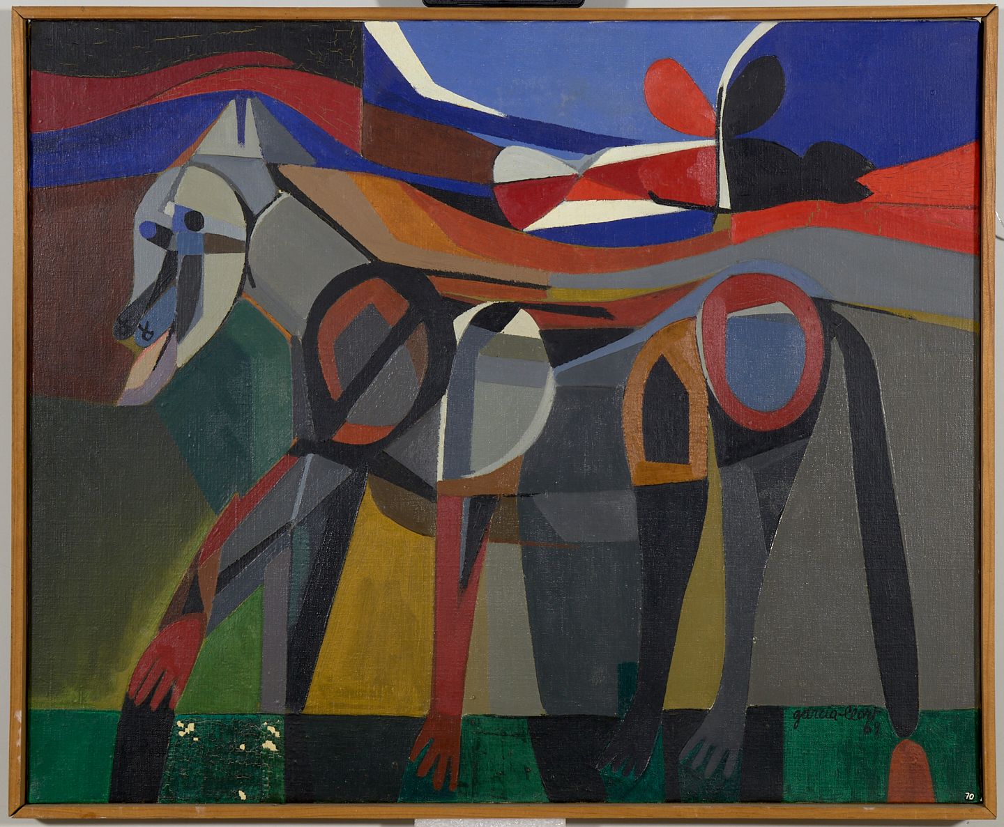 Josep Maria Garcia-Llort (Barcelona, 1921 - 2003) es forma a l’Escola Massana, estudis que completa amb classes de dibuix al natural al FAD i al Cercle Artístic de Barcelona. El 1950 obté una beca que li permet traslladar-se a París on coneixerà a la que serà la seva dona, Martha Crockett, amb qui el 1954 marxa a viure als Estats Units fixant la seva residència a Pinveville, Luisiana. En aquesta regió, Garcia-Llort queda molt impressionat per la seva natura. La fauna de la zona influenciarà fortament la seva iconografia animalista, com podem veure en aquesta pintura. Finalment quan estava vivint entre Nova York i Louisiana, torna a Barcelona el 1959. Fins a la seva mort, va estar molt vinculat a la Sala Dalmau, on va exposar regularment. L'obra de Garcia-Llort, amb un estil molt personal i allunyat de les tendències del moment, s'inspira en el romànic i l'obra de pintors com Roualt i Chagall. Tenia una visió crítica de la religió que va reflectir a les seva obra amb sentit de l'humor.
