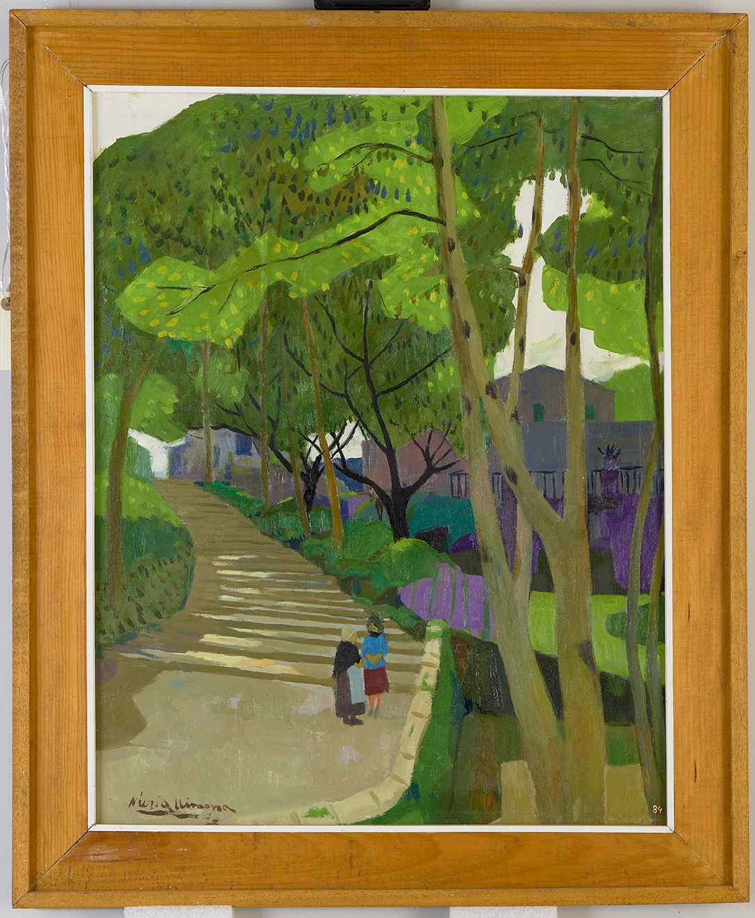 Núria Llimona i Raymat (Barcelona, 1917 - 2011) forma part d’una nissaga d’artistes. Durant els anys 30, va estudiar a l'Escola Oficial de Belles Arts de Barcelona. Durant la postguerra, va ser professora de pintura a casa seva i també a la Llotja, on ella havia estudiat. Les seves primeres exposicions les va fer a la Galeria Syra, a la Sala Nonell i a la Sala Parés. Fou presidenta del 9è i 10è Saló Femení de l'Art Actual. Al llarg de la seva vida va reivindicar les dones artistes, motiu pel qual va impartir nombroses conferències als centres cívics de Barcelona amb el lema La dona i la pintura. Com a pintora, va excel·lir en el gènere paisatgístic urbà, dins un estil naïf constructiu i postimpressionista, amb una gran importància del color. També va ser ceramista, muralista i escriptora.