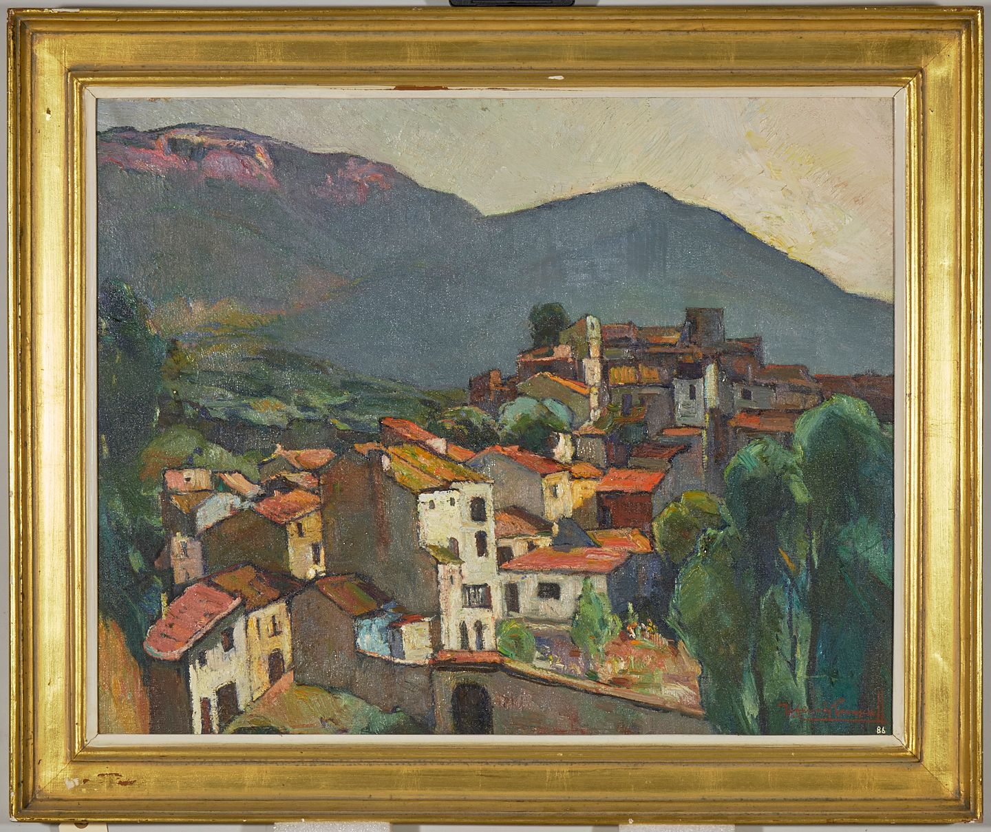 Josep Ferré Revascall (Vilaplana, 1907 - Reus, 2001), pintor i mestre de pintors, es va formar a Barcelona amb mestres com Fèlix Mestres i Lluís Labarta. Es va establir a Reus l'any 1934, on va engegar una acadèmia de dibuix i pintura. Va ser professor de dibuix a l'Escola del Treball de la mateixa ciutat, de la que va ser director el 1937. A la postguerra va reprendre les activitats artístiques, i va fer exposicions a Reus, Barcelona i Madrid, i a Tànger, Tetuan, Casablanca i diverses ciutats de França i Anglaterra. Se'l coneixia amb el sobrenom de ”El Príncep de les Roses” pel seu virtuosisme en representar-les, però la seva obra també inclou paisatges, natures mortes i retrats. Aquest paisatge és una vista del seu poble natal, Vilaplana, al Baix Camp.