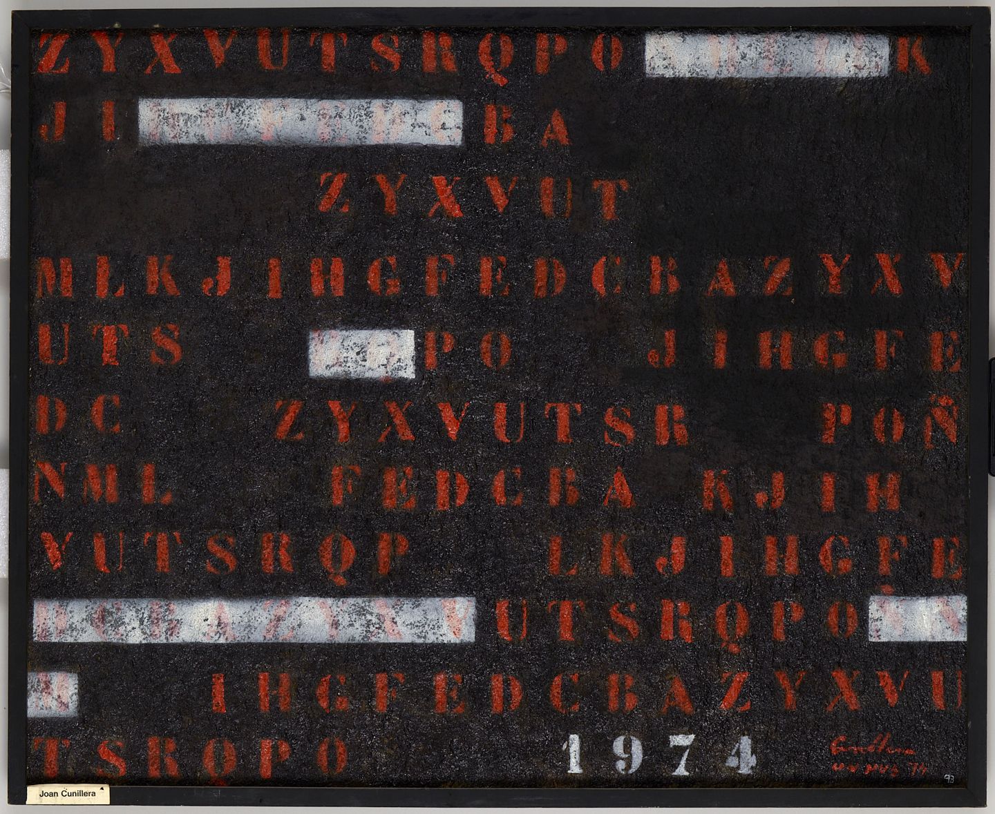 Joan Cunillera (Vila-rodona, 1933 - Santes Creus, 2021), de formació autodidacta, va iniciar la seva trajectòria artística a partir de l'estada que va fer a Santes Creus el pintor neozelandès de tendència impressionista Cedric Savage, cap a la segona meitat dels anys 50. Ben aviat es va vincular als moviments artístics de la ciutat de Valls, participant en les exposicions del Grup de Tardor i sobretot en l'experiència col·lectiva del grup Un Nus (1971 - 1984). Aquesta pintura forma part de l'etapa de Cunillera en la qual representava signes, lletres i números, a partir de plantilles, que semblaven surar sobre un espai indefinit. però en la seva obra també va pintar paisatges, sobretot de Santes Creus, flors, bodegons, ocells i figures humanes.