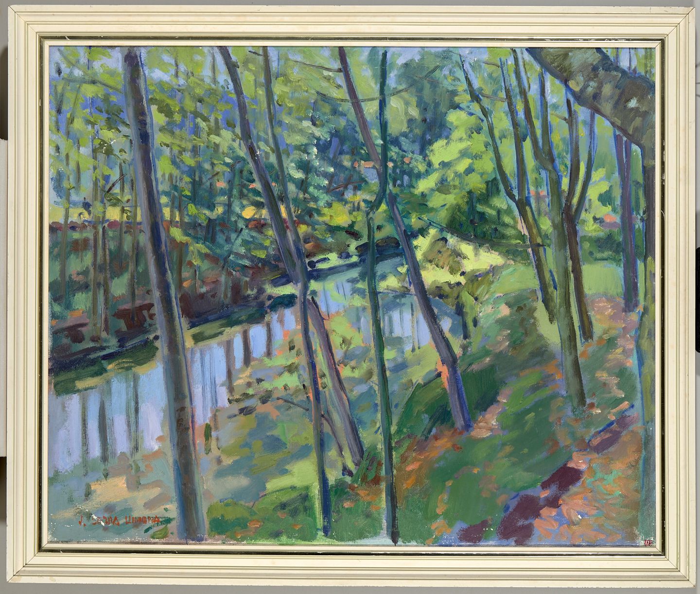 Josep Serra Llimona (L'Ametlla del Vallès, 1937 - Barcelona, 2020) formava part de la nissaga d'artistes dels Llimona. Després d'estudiar dret va decantar-se per l'art i va formar-se al taller de Ramon Rogent i a l'Académie de la Grande Chaumière, a París, amb el pintor Jacques Busse. L'any 1961 va ser guardonat amb el primer Premi a la pintura jove de la Sala Parés de Barcelona, galeria a la qual va seguir vinculat durant tota la seva carrera. Fidel a la figuració més clàssica, dins d'un estil postimpressionista, un del seus gèneres preferits va ser el paisatge, com en aquesta pintura del riu Fluvià, però també va cultivar les natures mortes i interiors, fos amb pintures a l'oli, aquarel·la o en gravats.