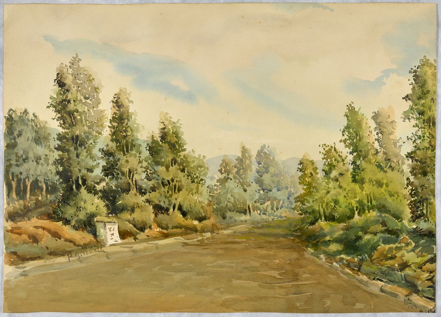 Pere Gussinyé (Olot, 1898 - 1980), pintor, membre de l'escola paisatgística d'Olot. Va treballar a partir dels catorze anys en estatuària religiosa a Olot, concretament als tallers Mató. Va aprendre pintura amb Josep Berga i Boix, complementant la seva formació a l'Acadèmia Mallol i al Cercle Artístic de Sant Lluc de Barcelona. Va exposar aviat a la seva ciutat i el 1928 va realitzar la primera exposició a Barcelona, a la qual seguirà una gran quantitat de mostres els anys posteriors i en diferents ciutats del país i de la resta de l’Estat i a Llatinoamèrica. El 1942 va ser nomenat professor de l'Escola de Belles Arts d'Olot, càrrec que exercirà fins a la seva jubilació el 1968. El 1977 l'Ajuntament d'Olot li va atorgar la Medalla de la Ciutat. La majoria de la seves obres estan realitzades a plein air, com és habitual en els artistes de l'Escola d'Olot, amb pinzellades i taques de color impressionistes que amb els anys es van tornar més desdibuixades.