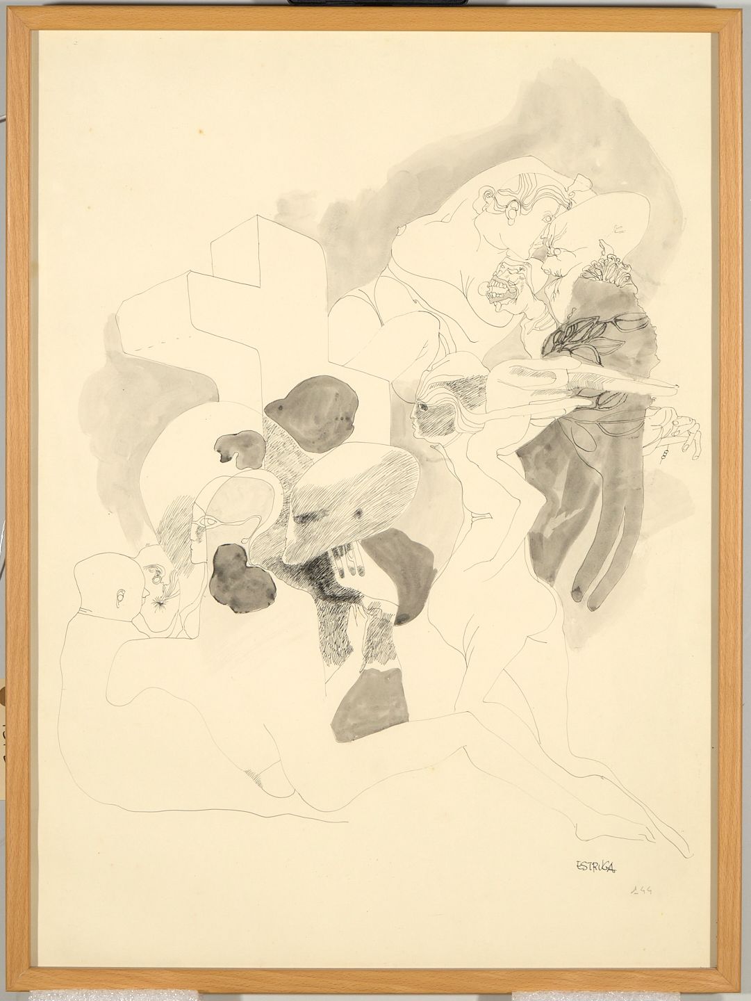 Òscar Estruga (Vilanova i la Geltrú, 1933) és principalment escultor però també pintor i il·lustrador, resident a Madrid des del 1959. Va fer estudis de peritatge industrial però compaginant-ho amb el dibuix i la pintura, i exposà per primer cop a Barcelona l'any 1957 amb mostres a les Galeries Laietanes i a la Sala Dalmau. Sobretot des del seu establiment a Madrid, es dedica molt a l'escultura, explorant temàtiques sobre la mitologia mediterrània i grecorromana, i té obra pública a diverses ciutats, entre elles a la seva Vilanova natal i a Madrid. També ha il·lustrat llibres de bibliòfil amb la tècnica del gravat.
