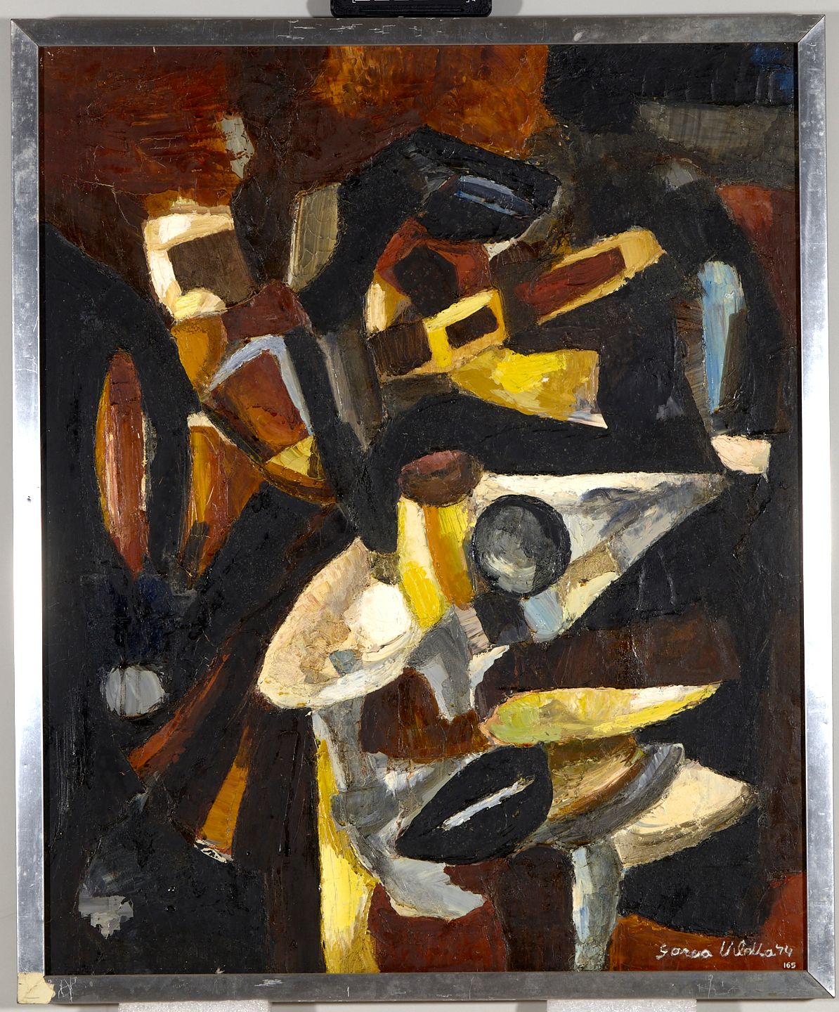 Aquesta pintura de Francesc Garcia Vilella (Barcelona, 1922 - 2001) és totalment representativa de la seva aposta per l'abstracció i l'art d'avantguarda de postguerra amb tècniques com l'oli, l'aquarel·la, el gravat i la ceràmica. Es va formar a l'Escola d'Arts i Oficis de Barcelona, i el 1945 feu la seva primera exposició individual a la Sala Rovira de Barcelona. El 1948 va participar al Saló d'Octubre i va participar al darrer número de la revista Dau al Set. Als anys 50 consolida la seva carrera amb diverses exposicions internacionals que el porten a Estats Units, Itàlia, Àustria, Alemanya i França. Després del final de la dictadura, va alternar les mostres a l'estranger amb d'altres a Catalunya i a la resta de l'Estat.