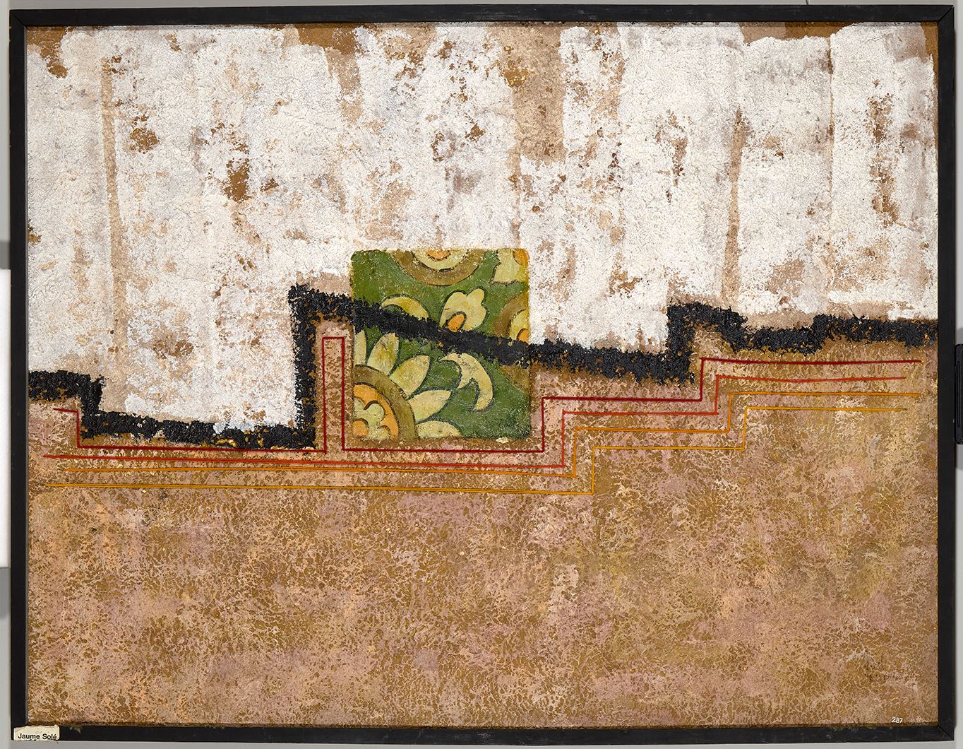 El pintor Jaume Solé (Valls, 1943 - 2011) es va formar a l'Escola del Treball de Valls i posteriorment a Barcelona al taller de Josep Soligó. Va formar part del Grup de Tardor, i posteriorment del grup Un Nus on va compartir perspectives amb altres artistes de l'Alt Camp compromesos socialment en els últims anys de la dictadura franquista i durant la Transició. D'aquest moment de definició del llenguatge artístic de Solé, és aquest collage abstracte. Quan abandona, el grup Un Nus comença a alternar la figuració, amb un especial interès pel paisatge de l'Alt Camp, i l'abstracció. Treballa en sèries, com, per exemple, Ignis, sobre el tema dels incendis que destrueixen el paisatge, o Estampes dels 90 i Contrasts, que denuncien les injustícies socials i la guerra. La seva obra ha estat exposada en nombroses galeries i centres d'art d'arreu del món des de l'Estat espanyol a França, Alemanya, Itàlia i els Estats Units.
