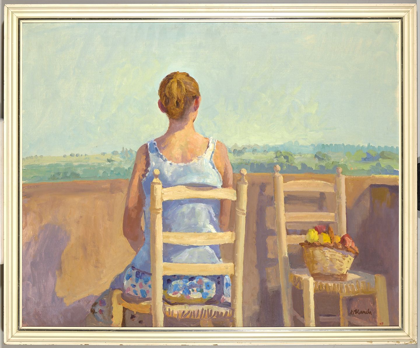 Xavier Blanch (Barcelona, 1918 - Madrid, 1999) va estudiar a l'Escola de Belles Arts de Sant Jordi. Es va integrar al grup d'artistes habituals de la Sala Parés creat 1934, encara que ell era el més jove. La seva primera exposició individual en aquesta galeria va ser el 1949, any en què també va obtenir el premi extraordinari de Miquel Mateu Pla per a artistes novells de l'Exposició Nacional de Belles Arts de Barcelona. Va passar temporades a París, Roma i Cadaqués, on va exposar a la Galeria 1 el 1979, i al 1985 es va traslladar a viure a Madrid, on es va quedar fins a la seva mort. Els seus quadres tenen una paleta suau de colors, i un dels seus temes preferits, va ser la figura femenina.