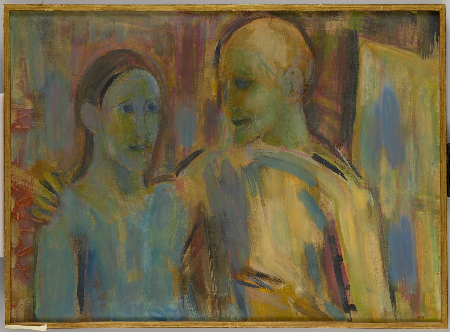 Pere Gastó (Barcelona, 1908 - 1997) va començar la seva trajectòria a l’estudi que compartia amb Emili Grau Sala, i fou un pintor molt culte en el camp de la literatura i la música d'avantguarda. El va influenciar especialment Stravinski i la seva composició L'ocell de foc i per Schönberg amb Pierrot Lunaire, i en pintura l’Època Blava de Picasso i l'expressionisme centreeuropeu. El seu llenguatge, molt personal i allunyat de les tendències dominants, es va centrar en la figura humana i l'estudi de la psique, amb personatges de rostre angulat i cos allargassat, que ell anomena “actors”, com en aquesta obra, que tenen un aire oníric i gairebé fantasmal. Va ser un habitual de la Sala Parés de Barcelona a partir dels anys 70, galeria que el 2019 li va dedicar una retrospectiva per reivindicar la seva obra que havia quedat pràcticament oblidada.