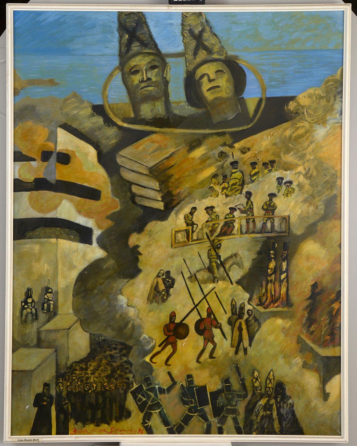 Lluís Bosch Martí (Girona, 1941) és pintor, ceramista, articulista, professor i activista. Amb una trajectòria molt lligada a la seva ciutat natal, Bosch Martí s'ha inspirat en multitud de referències literàries i artístiques, com és el cas de Pier Paolo Passolini a qui homenatja en aquesta obra. Sempre a la defensa dels més febles i dels drets socials, Bosch ha col·laborat en publicacions com Presència, El Punt, Diari de Girona i Bonart. El 1969 va decorar l'absis de l'església Palau-Sator (Baix Empordà) que serà destruït pel Comando Guerrilleros de Cristo Rey. També és l'autor dels tres murals ceràmics de l'estació de Sarrià dels Ferrocarrils Catalans titulats: Cosmogonia catalana, La sardana còsmica vers les galàxies i El poble treballador com a eix de la història (1976).