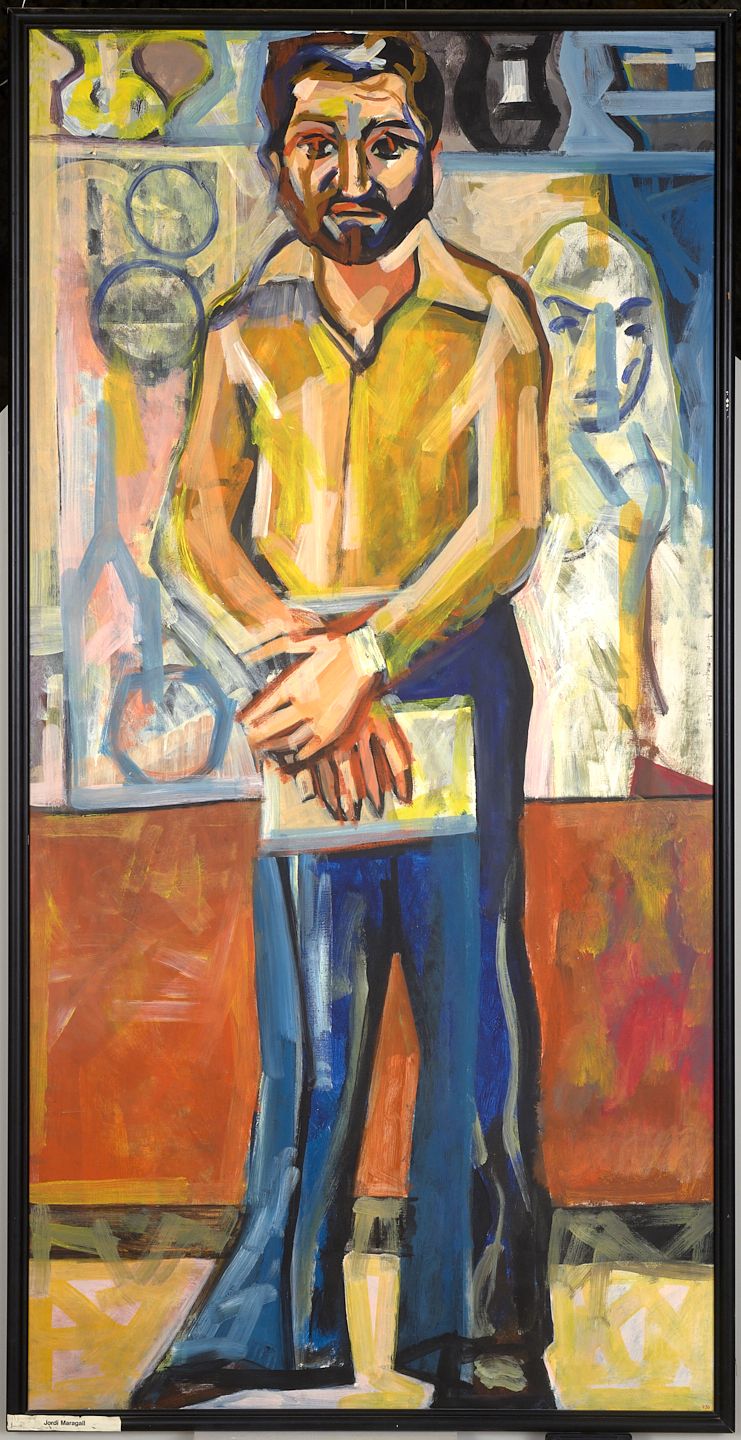 Jordi Maragall (Barcelona, 1936 - 2023) era membre d'una important saga catalana d'artistes i d'intel·lectuals: fill de Jordi Maragall i Noble i nét del poeta Joan Maragall, així com germà del polític Pascual Maragall. Es va formar com a pintor a l'Acadèmia Valls i al Cercle Artístic de Sant Lluc, i va estudiar al taller del pintor Ramon Rogent. La seva primera exposició va tenir lloc a la Sala Vayreda de Barcelona el 1959 i des d'aleshores va exposar en nombrosos espais. La seva obra és bàsicament expressionista, alternant figuració i abstracció, amb clars referents com Roualt, Matisse, Kokoschka, Léger, Morandi, Nolde i Munch. En aquest autoretrat quotidià, en el què Maragall posa com per a una fotografia, es pot veure la contundència del seu traç i la importància del color a la seva obra.
