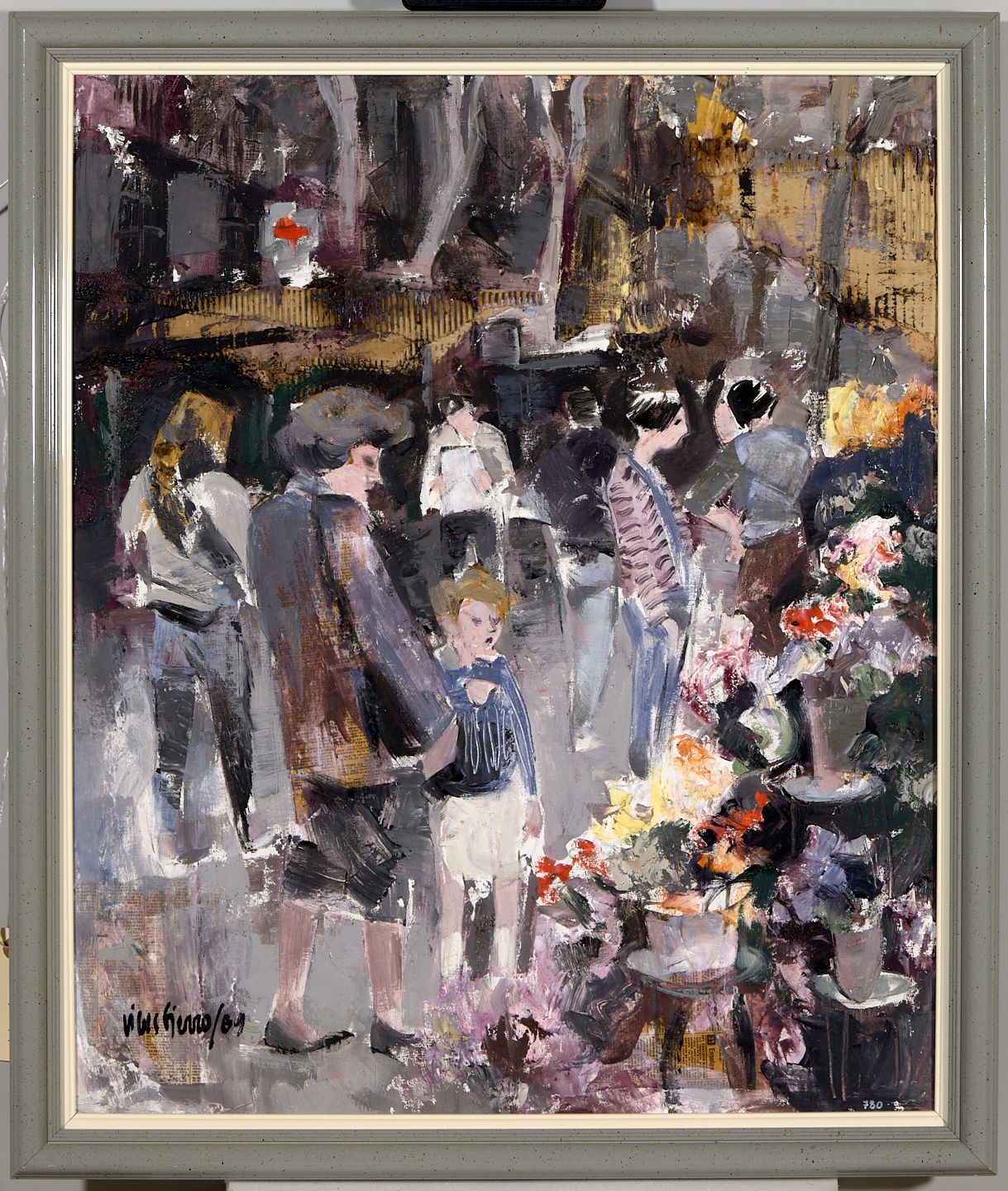Antoni Vives Fierro (Barcelona, 1940 - Vilafranca del Penedès, 2024) és un pintor que es va especialitzar en el paisatge urbà, sobretot de ciutats com Barcelona, París, Londres (on va residir als anys 70) i l'Havana. Va estudiar a la Llotja i també al Cercle Artístic de Sant Lluc. El 1961 es va establir a París i el 1962 va exposar per primer cop a Cartagena, i s’instal·la a Londres el 1970 exposant-hi diverses vegades. També va exposar a Ginebra, Düsseldorf, París, Montevideo, Atenes, Nova York, l'Havana, Bayreuth, Barcelona, Madrid i en altres indrets de Catalunya. Utilitzava diferents tècniques en les seves pintures, tot i que els darrers anys s'havia decantat per l'oli amb collage, com és el cas d’aquest típica escena de la diada de Sant Jordi a la Rambla de Barcelona. Ell es definia com a “postimpressionista”, i va realitzar nombrosos cartells commemoratius.