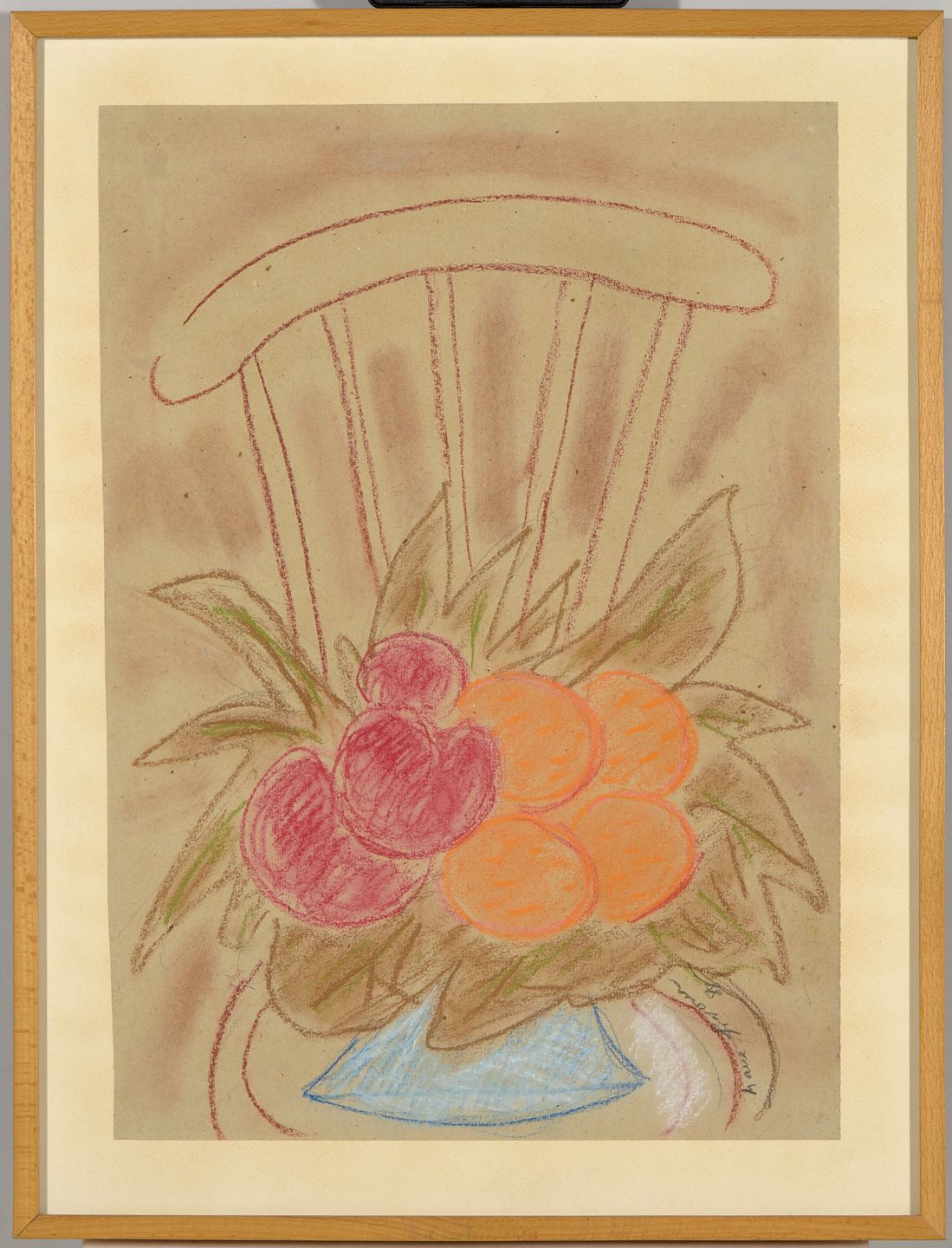 Maria Girona (Barcelona, 1923 - 2015) es va formar a l'Acadèmia Tàrrega, on entra en contacte amb altres pintors de la seva generació amb qui va crear el grup Els Vuit, una de les primeres agrupacions artístiques amb voluntat renovadora de Catalunya a la postguerra. La seva pintura, sempre dins de la figuració, està influenciada per Matisse i el Noucentisme més mediterranista, com es pot veure en aquest dibuix de gènere floral. Als anys 60 va participar en les exposicions del col·lectiu Estampa Popular. A partir dels anys 70, va afegir a la seva producció els collages, sempre dins d'una figuració molt pròpia. Juntament amb el seu marit, Albert Ràfols Casamada, va participar activament de nombroses iniciatives culturals, entre elles el procés de creació de l'escola de disseny Eina i les activitats que hi van tenir lloc.