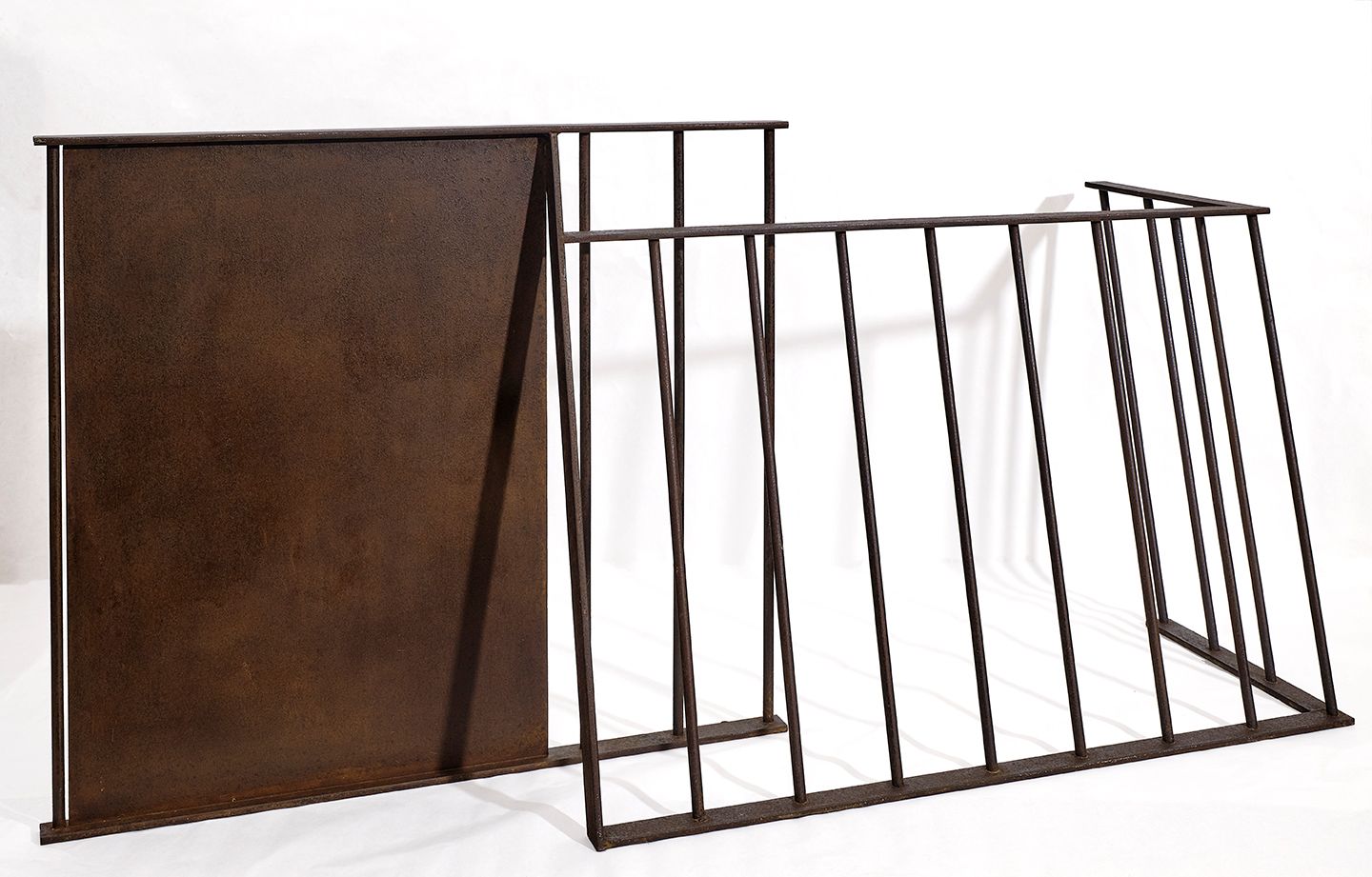 Agustí Roqué (Barcelona, 1942 - 2017), també conegut com a Roqué, fou un escultor que desenvolupà una obra d’arrel minimalista i constructivista, amb unes formes molt sòbries. Una de les formes que més ha representat és la barana de ferro, com és el cas d’aquesta peça. També té obres transitables de gran format, com la que hi a l'avinguda de Rio de Janeiro de Barcelona, en formigó negre de 306 m de llargada (1985 - 1989). Té obra pública en diversos llocs de Catalunya, com també a Alemanya, França i als Estats Units.