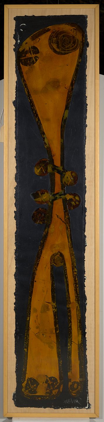 Lluís Vilà (Banyoles, 1952 - 2010) fou pintor, escultor i dissenyador. Va formar part d'un col·lectiu multidisciplinari integrat per escultors, dissenyadors, arquitectes i intel·lectuals, anomenat Grup Tint-2. Va destacar per les seves aportacions dins del corrent de l'art conceptual del eat art i de l'art fungible, incorporant a les seves obres el pa com a material artístic, en una crítica dirigida a la societat de consum. El 1982 va realitzar la sèrie Les sabates comestibles, i dos anys després, a l'Espai 10 de la Fundació Miró de Barcelona, va presentar l'exposició Entrepà enlluït, on les obres estaven entre les escultures votives fetes amb massa de pa i una filiació estètica amb el kitsch del barroc popular. Va donar per acabada aquesta etapa amb l’exposició Àlef (1996), a la galeria Alter Ego de Barcelona, en la qual va utilitzar com a pintura la seva pròpia sang, A finals dels anys 80 i principis dels 90, es va dedicar més a l'escultura en ferro i la pintura sobre paper, com aquesta obra.