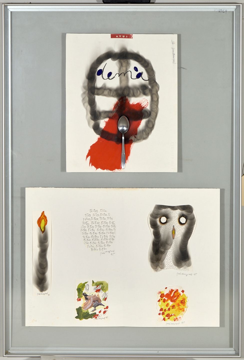 Josep Guinovart (Barcelona 1927 - 2007) està considerat un dels màxims representants de l'informalisme, que va cultivar en pintura, dibuix i gravat. Format a l'Escola de Mestres Pintors, l'Escola de Llotja, i l'Escola d'Arts i Oficis, obté una beca FAD el 1946, i el 1948 presenta la primera exposició individual a la galeria Syra de Barcelona. El 1957 va cofundar el grup avantguardista Taüll, època en la qual participa en diverses exposicions internacionals, a Brasil, Egipte i Venècia. El 1994 se li dedica un museu a Agramunt, vila on sempre va mantenir vincles familiars. Guinovart va fer aquesta peça expressament per a l'Avui.