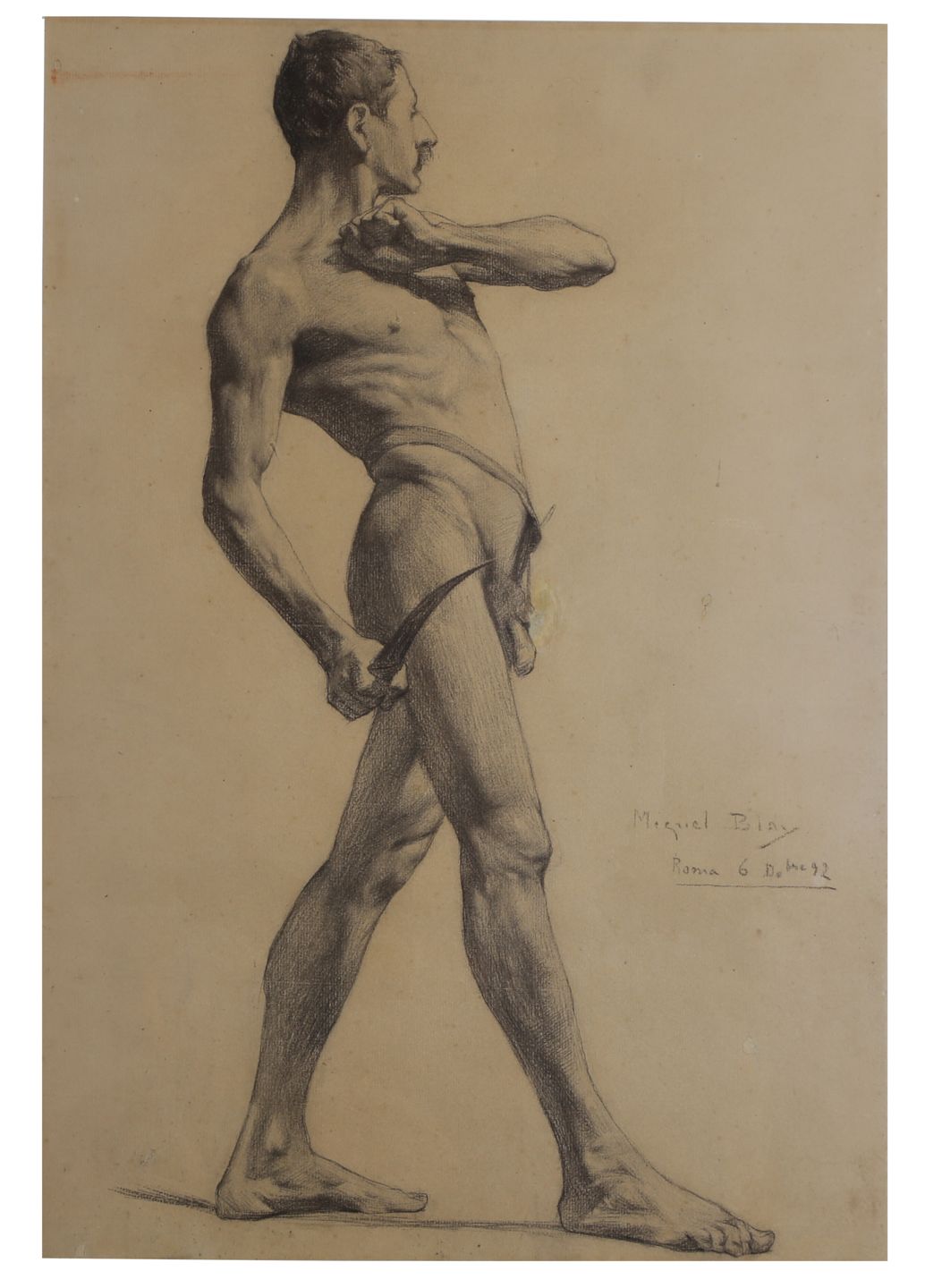 Miquel Blay i Fàbregas (Olot 1866 - Madrid 1936) va ser un escultor català format a Olot, París i Roma. Els seus inicis en el realisme idealista es van veure ràpidament influïts pel modernisme de finals del segle XIX. Dues llargues estades a París (1888-1891 i 1894-1906) li van servir per entrar en relació amb alguns dels primers noms de l'art europeu, i per configurar el seu estil característic. El 1906 s'instal·la a Madrid, on realitza diversos encàrrecs oficials, i a partir de 1910 treballa també en monuments públics per a diverses capitals sud-americanes. Com a escultor, Blay mostra des de ben jove un ple domini sobre la tècnica del dibuix al natural. Aquesta figura masculina és un dels "apunts" o exercicis necessaris abans de formular segons quin model escultòric.