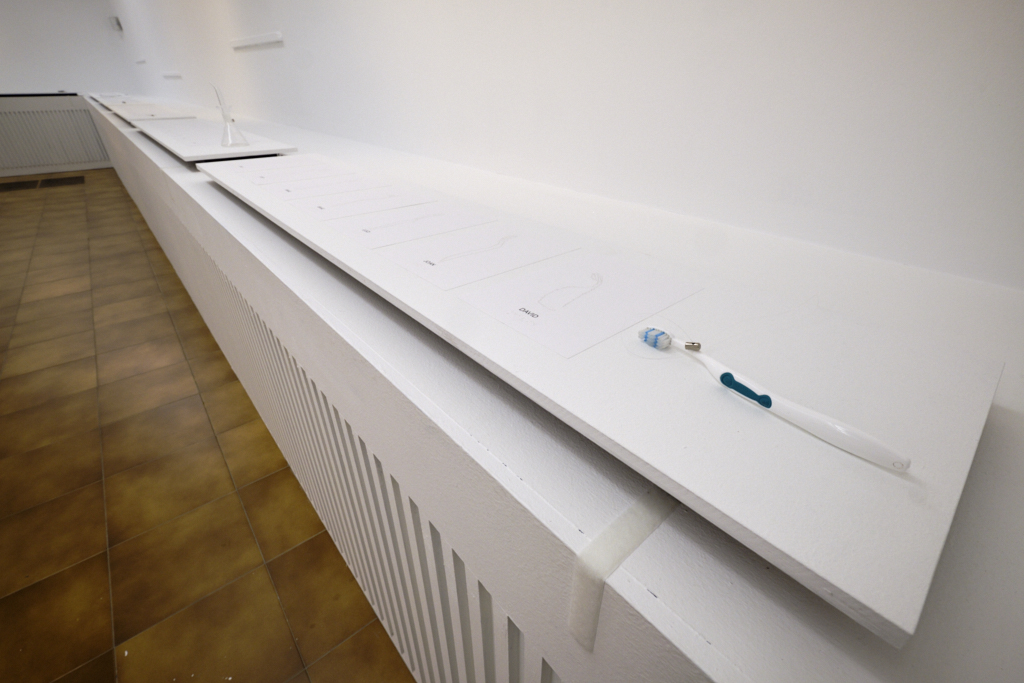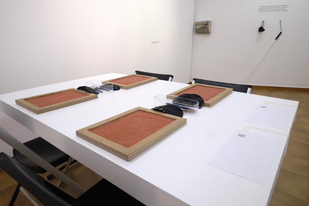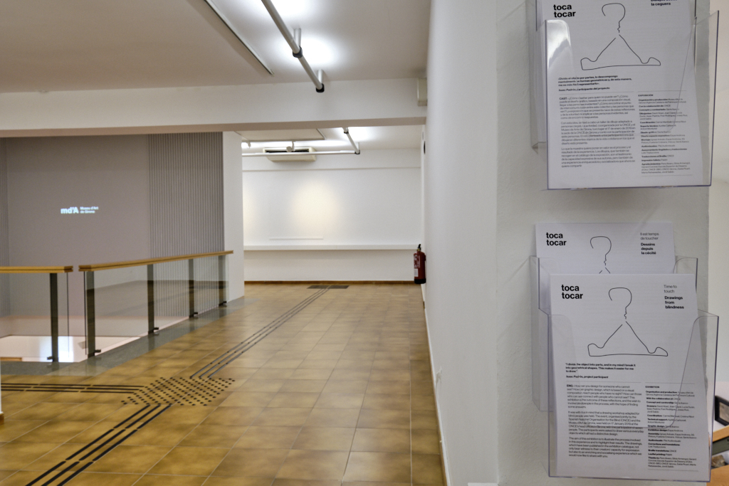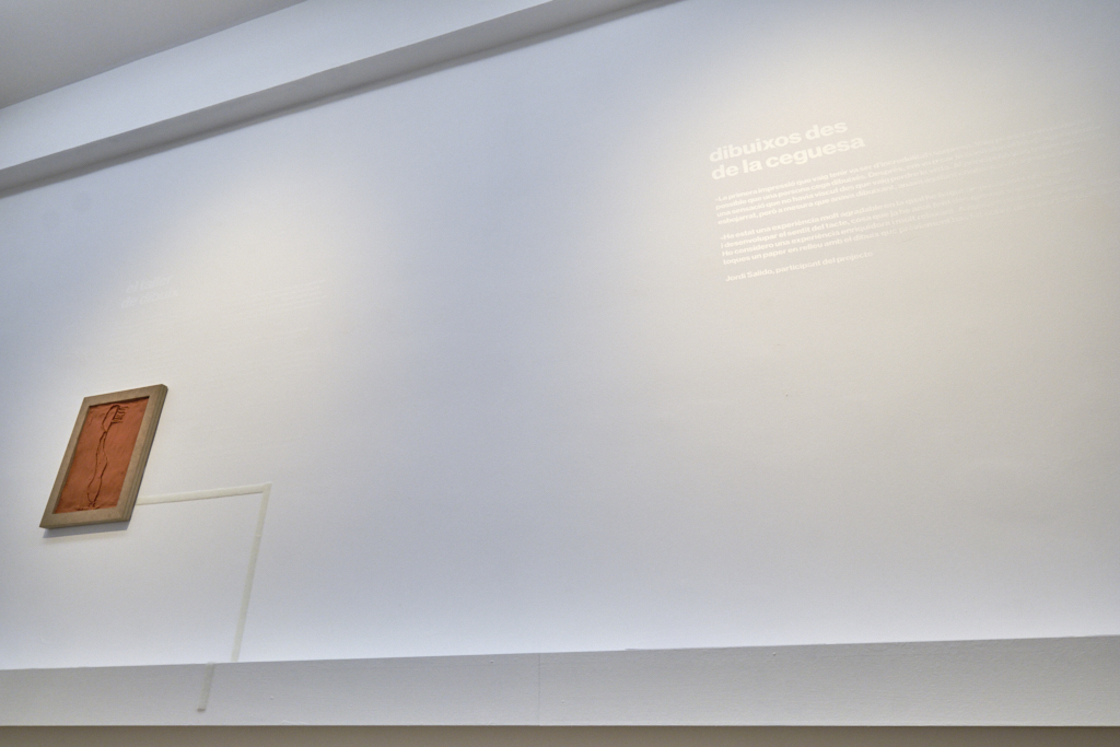 El disseny i presentació museogràfica de l’exposició ha esdevingut també un exercici d’aprenentatge mutu, entre els participants del curs, els dissenyadors i el mateix Museu d’Art, per conceptualitzar una exposició totalment accessible per a invidents, en la qual ells son els protagonistes i que, a més, posa en situació similar als visitants de la mostra, que poden assajar el dibuix a ulls clucs, o recórrer l’exposició a cegues.