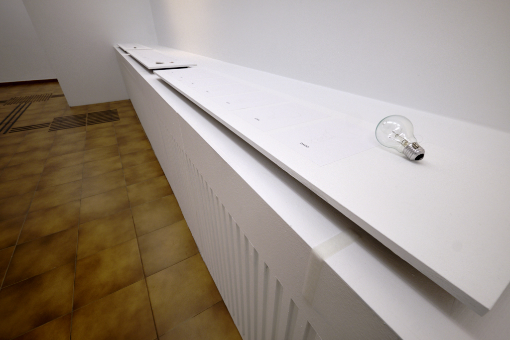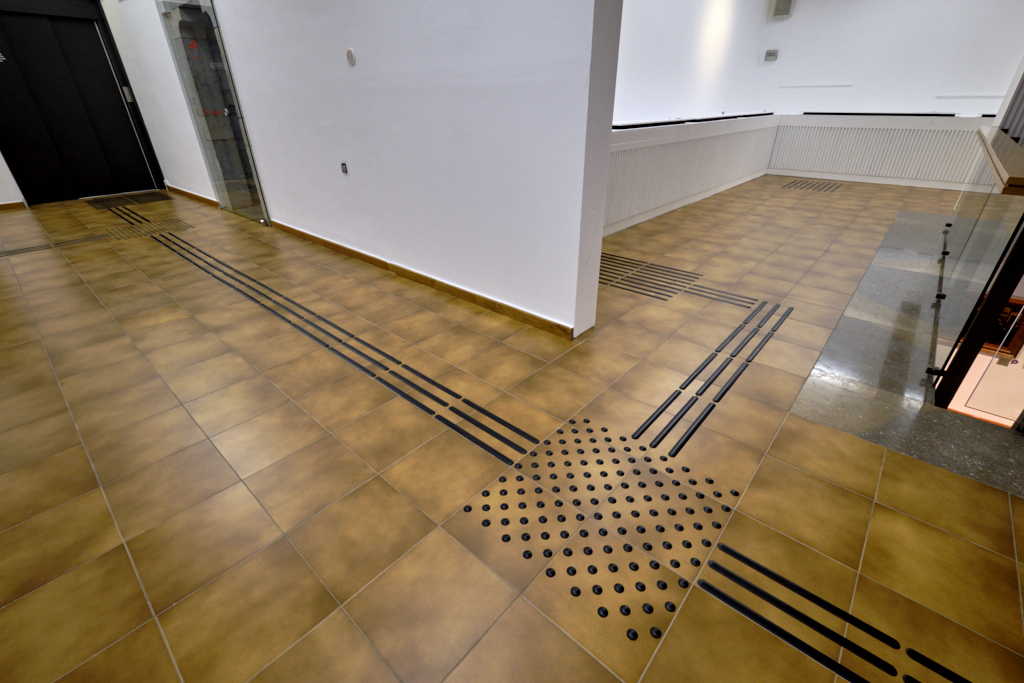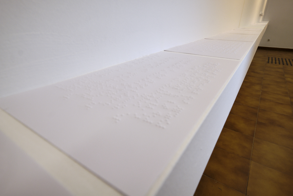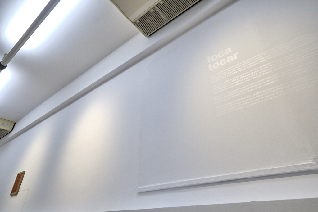 Els textos de paret són volgudament blancs, es confonen amb el propi color de la paret. Es tracta d’un exercici que pretén posar a prova els visitants vidents i que puguin empatitzar amb els diferents graus de problemàtiques de visió dels invidents.