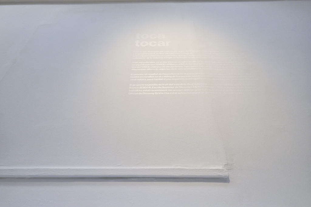 El 17 de gener de 2019 el Museu d’Art de Girona i ONCE Girona van organitzar un taller de dibuix per a persones cegues. El Museu d’Art presenta ara una exposició, comissariada per Genís Ibanco, del 15 de juny al 29 de setembre de 2019, mostrant els resultats del taller. El catàleg recull una selecció dels dibuixos resultants. El podeu trobar a la botiga del museu