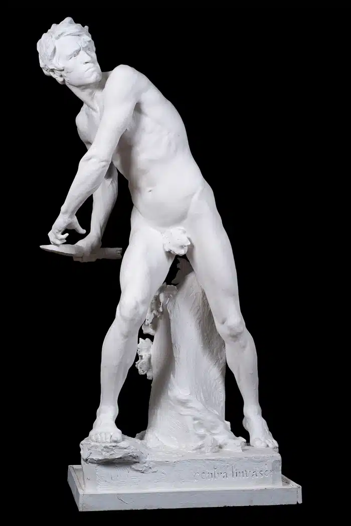 Contra l’invasor és una de les obres més conegudes de l’escultor olotí Miquel Blay. L’escultura simbolitza l’heroisme i s’inspira en la resistència gironina en la defensa de la ciutat durant la guerra del Francès del 1808. Carles Rahola, escriptor i polític gironí, va publicar un article amb el mateix títol, Contra l’invasor, el 1938, on elogiava aquesta escultura com a símbol de lluita i resistència, llavors contra el feixisme. Per aquest article i d’altres de similars va ser jutjat i sentenciat a mort. Després d’una angoixant espera a la presó, va ser afusellat el 15 de març de 1939 al cementiri de Girona.